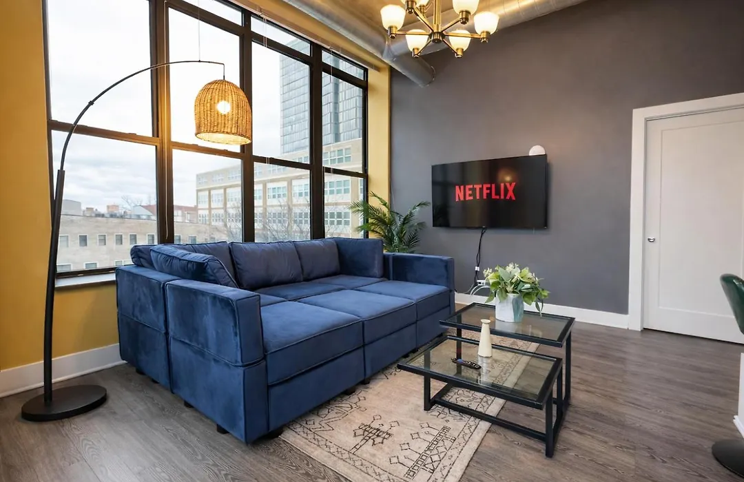 Located 8 minutes' walk from Quinn Chapel African Methodist Episcopal Church, which is considered to be a sacred place of worship, the 88 m² Mccormick Place Stylish Corner Unit With Parking, Gym That Sleeps Up To 6 apartment offers storage for belongings for guests' convenience.